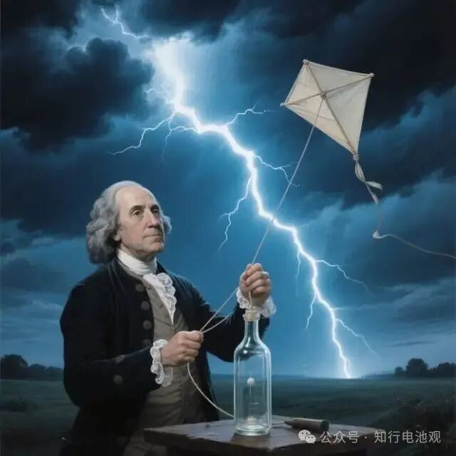 豐碑一:1749年-富蘭克林與萊頓瓶——電池Battery一詞的誕生!大家應該都知道電池的英文單詞是Battery。這一單詞是由美國的本杰明·富蘭克林在1749年左右首次引入到電學領域的。Battery在軍事領域的本義是排炮,可以連續發射炮彈的那種。富蘭克林借鑒了軍事領域的這一詞語將其用來做電學實驗的萊頓瓶命名為了“Electrical Battery",這一命名強調了其所制做的萊頓瓶裝置可以”連續地發射電荷“的特性。富蘭克林所制作的萊頓瓶Battery可以用來存儲電荷,不過其充電方式比較特別——利用天空中的閃電來充電!這就是我們小時候在課文里所學的富蘭克林閃電實驗了。值得一提的是富蘭克林不僅是著名的科學家和發明家,他還是美國杰出的政治家和外交家,為美國的獨立和建國做出了卓越貢獻,被譽為”美國建國之父“!并且他的光輝形象還被印在了100美元紙幣上,為世人所永遠銘記與敬仰。不過富蘭克林的萊頓瓶其實是一種電容器裝置,雖然可以用來存儲電荷,但還并非真正意義上的化學電池。